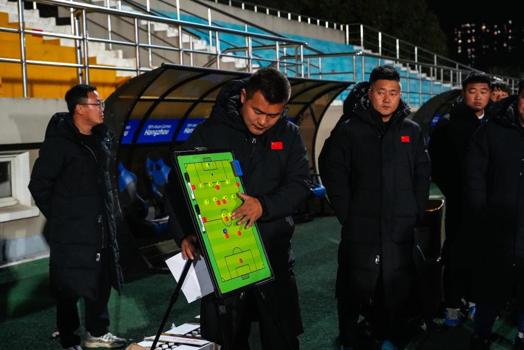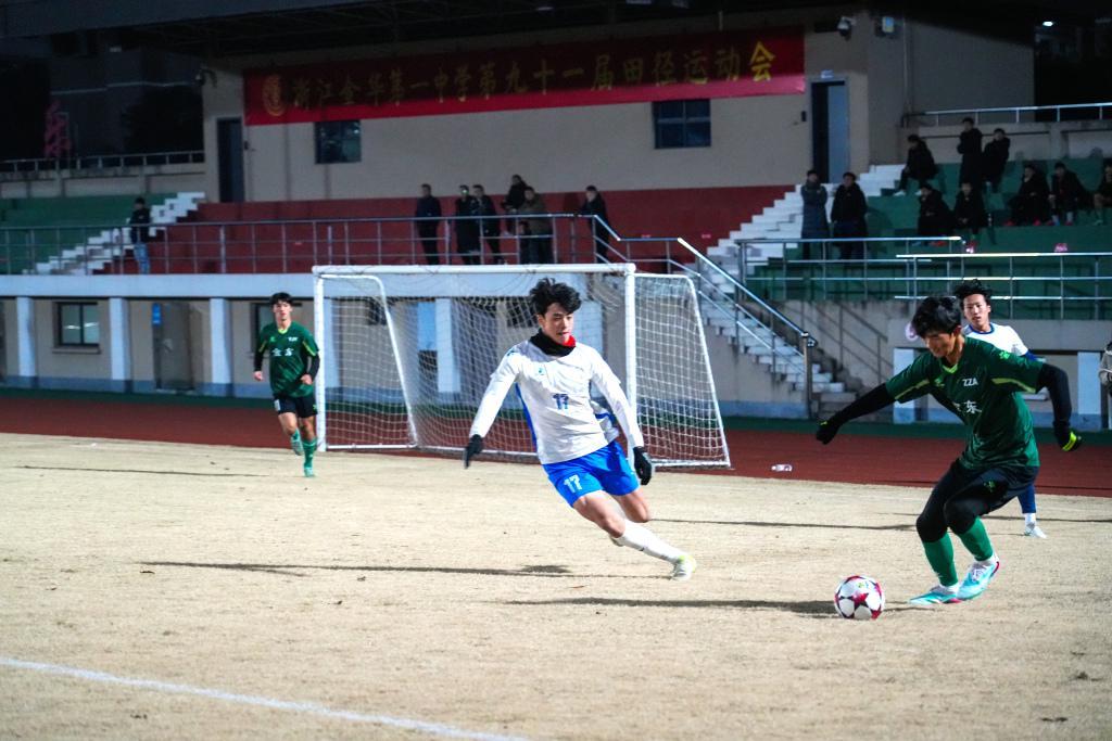 距离“金超”足球超级联赛揭幕,仅剩不到一周的时间,战鼓已然擂响!1月12日晚,在金华一中足球训练场上已是一派热火朝天的景象,教练带着球员们开展热身、基础技能、战术演练等训练,金东战队的球员们正以昂扬姿态投入赛前冲刺训练。作者:王毅琳